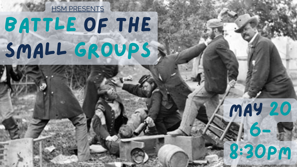 HSM Students! As we close out the school year, IT'S TIME! Time for the battle of all battles! The Battle of the Small Groups. We will compete in various group games both physical and mental to determine the winner as well as the bragging rights. Meet out at a local area farm for food, fellowship, FUN, and a little competition!